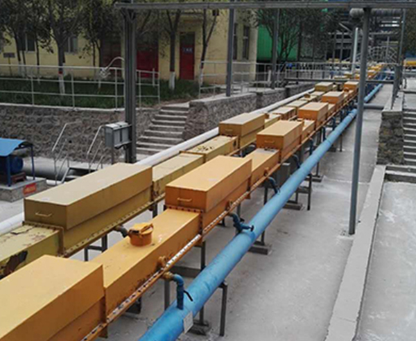 XZ型空氣輸送斜糟(空氣斜槽)適用有于輸送水泥等易流態(tài)化粉狀物料,對(duì)粒度大、水分多、流態(tài)化性能差的物料不宜使用??諝庑辈垡愿邏弘x心風(fēng)機(jī)(9-19:9-26型)為動(dòng)力源,使密閉輸送斜槽中的物料保持流態(tài)化向傾斜向下的一端緩慢的流動(dòng)。本機(jī)主體部分無(wú)傳動(dòng)部件,密封操作管理方便,設(shè)備重量輕,電耗少,送能力大,容易改變輸送方向,采用新型涂淪透氣層等優(yōu)點(diǎn)。