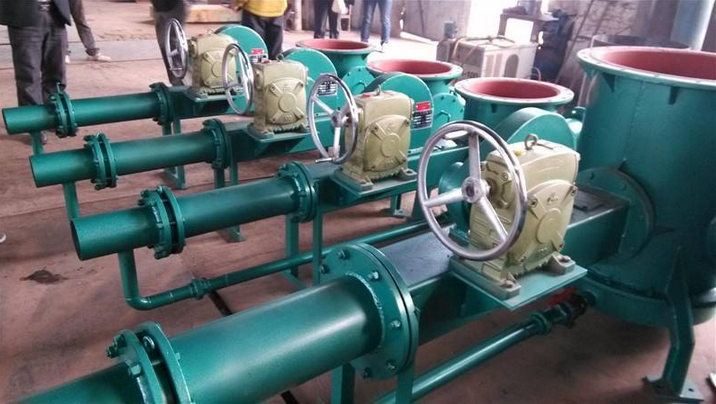 輸送管道可以在水平面任意轉(zhuǎn)彎,垂直提升,在輸送管道末段可以采用垂直向下等布置形式。當(dāng)受到地形氣力輸送料封泵輸送管道必須采用傾斜布置時(shí),其傾角不能大于5度。