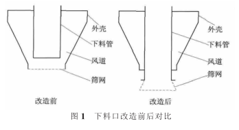 適當增加下料口內(nèi)筒長度,使水泥不堵塞下料口風道,料與風互不影響。